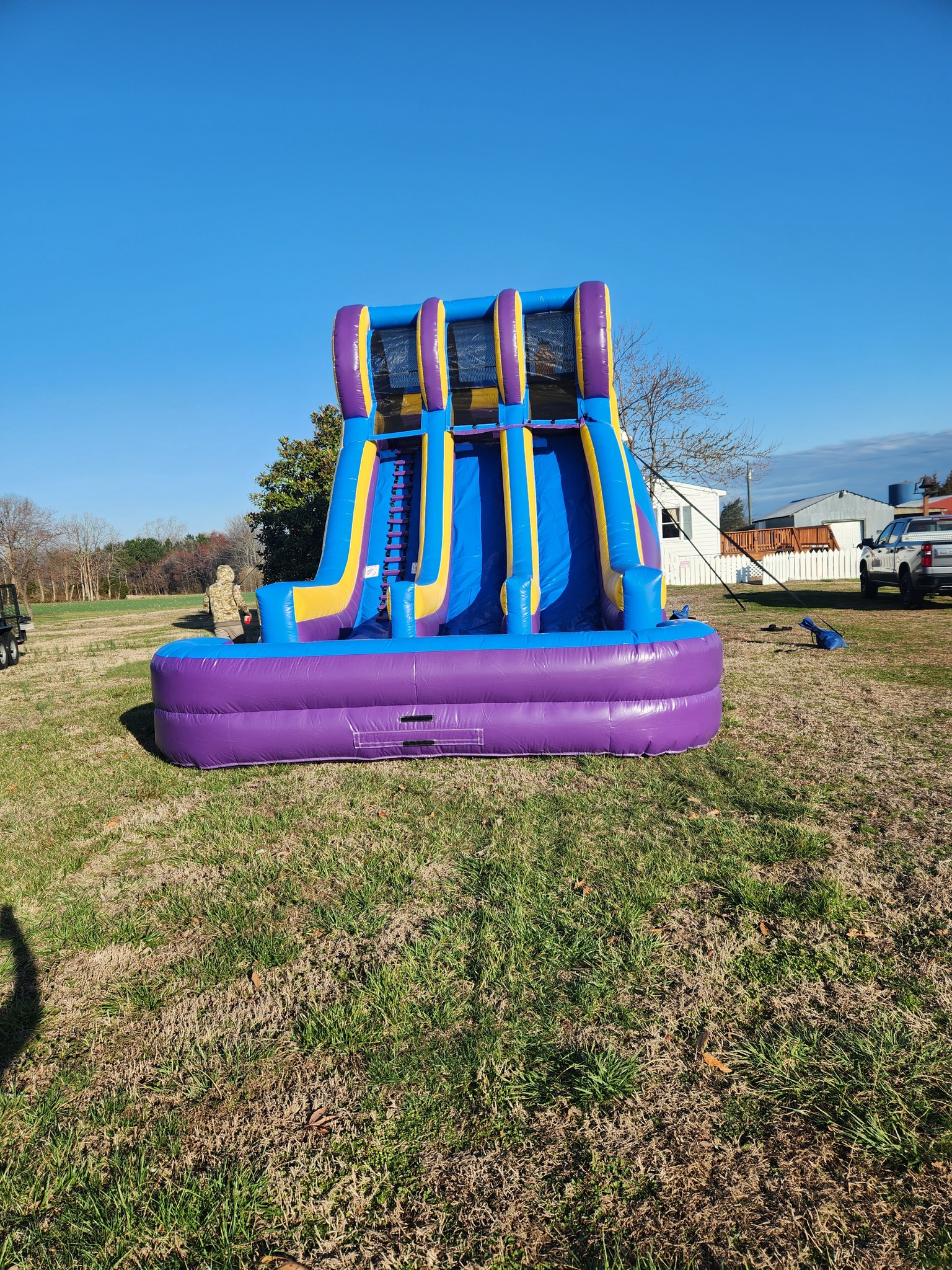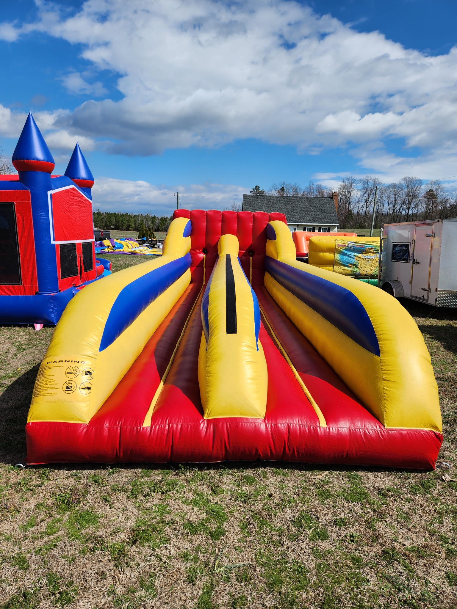 Twice the fun with double the speed! This massive 22' inflatable slide features two lanes for racing and is a thrilling centerpiece for any large party or festival.